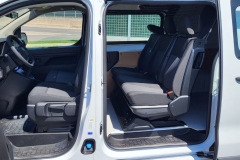 Fotel kierowcy z podłokietnikiem, dwumiejscowa kanapa pasażerów ze schowkiem pod siedziskiem, regulacja fotela kierowcy: wzdłużna, oparcia, wysokości, odcinka lędźwiowego