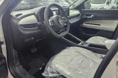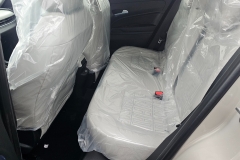 Tapicerka ze skóry ekologicznej w kolorze kości słoniowej z turkusowymi wstawkam, z monogramem Fiat